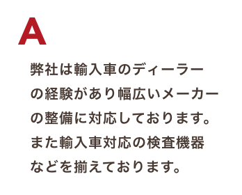 ボッシュの自動車整備機器を揃え、最新の設備と技術であらゆる車種のサービスに対応しております。ルノーとフィアットの正規ディーラーの経験もあり、輸入車の整備も対応しております。